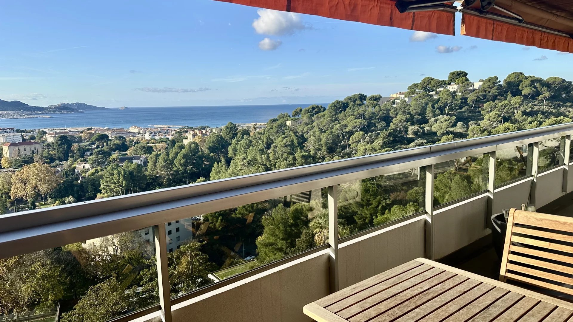 The entrance opens onto a majestic 85 m² living room bathed in light, extended on one side by a 32 m² terrace with a dominant view of the sea, and on the other side by a 20 m² balcony offering an unobstructed view of the city.